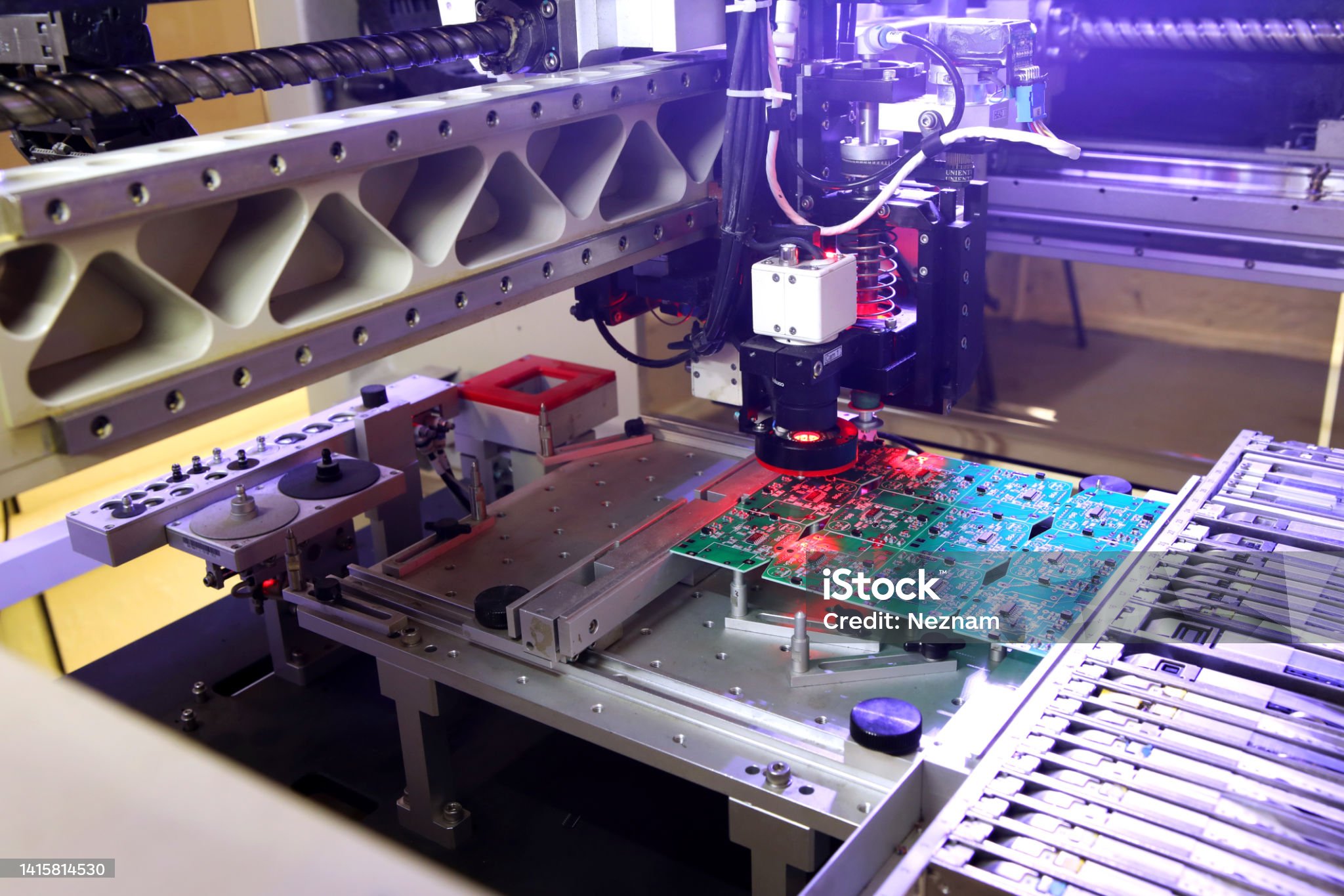 Installer of SMD parts on boards and soldering parts. Machine for automatic assembly and soldering of electronic circuit boards. Electrical soldering parts. Automated device assembly machine. Computers and electronics